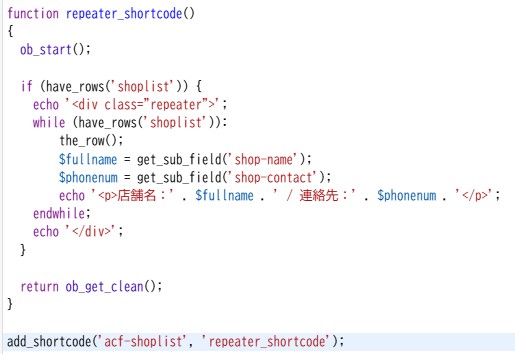 ACF Blocks はjson での設定ファイルと表示用PHPファイルを作成してテーマ関数に登録、と、少しハードルが高いと感じる場合はショートコードでも入れることができます。