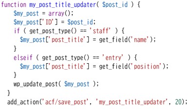 ACF フィールド値をタイトルに 2026年3月20日code-manageAdvanced Custom FIelds Advanced Custom Fields フィールドの入力値を投稿タイトルにする