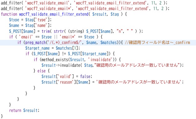 Contact Form 7 にメールアドレス確認欄をつけて一致を確認する関数。