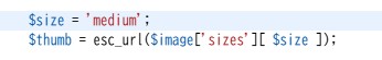 $size = ‘full’; // (thumbnail, medium, large, full or custom size)